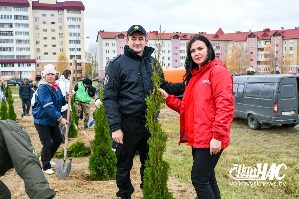 На призыв райисполкома и Волковысского коммунального хозяйства принять участие в озеленении городской территории откликнулись более 50 человек. Возглавил их член Совета Республики, председатель райисполкома Дмитрий Захарчук, председатель районного Совета депутатов Сергей Якимович, заместитель председателя райисполкома, председатель районного отделения Белорусской партии «Белая Русь» Игорь Соловей, представители силовых структур, общественных объединений и организаций. В числе участников данной акции и активные члены Волковысской организации профсоюза работников государственных и других учреждений.