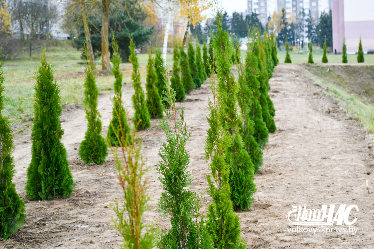 150 саженцев туи высажено 1 ноября в городе Волковыске