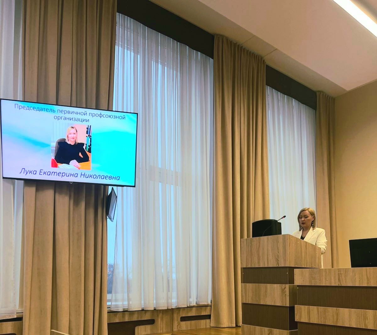 Впервые избранный председатель Юлия Слижевская принесла клятву профсоюзного лидера и поблагодарила коллег за оказанное ей доверие.