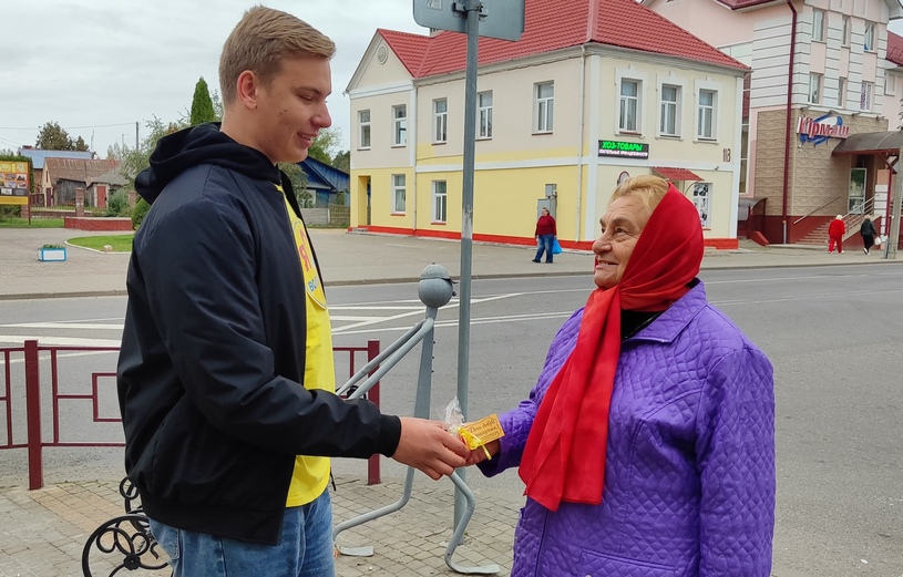 В День пожилых людей специалисты отделения первичного приема, информации, анализа и прогнозирования, комплексной поддержки в кризисной ситуации ГУ «ТЦСОН Ошмянского района» совместно с волонтерами отряда «Парус Надежды» решили внести праздник в однообразные будни пожилых людей, подарить им внимание и любовь. В знак глубокого уважения к людям старшего поколения организовали акцию «День добра и уважения».
