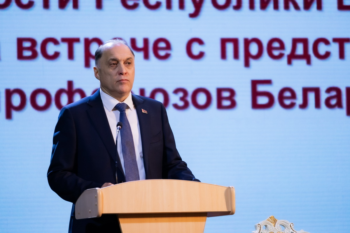 Государственный секретарь Совета безопасности Республики Беларусь Александр Вольфович встретился с представителями Федерации профсоюзов Беларуси и профактивом из всех отраслей экономики.