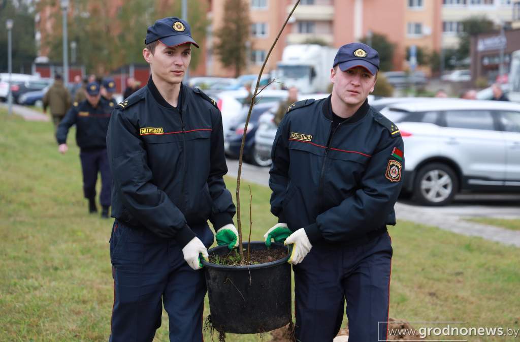 Посадка деревьев подчеркивает сплоченность сотрудников УВД Гродненщины и молодого поколения стражей порядка.