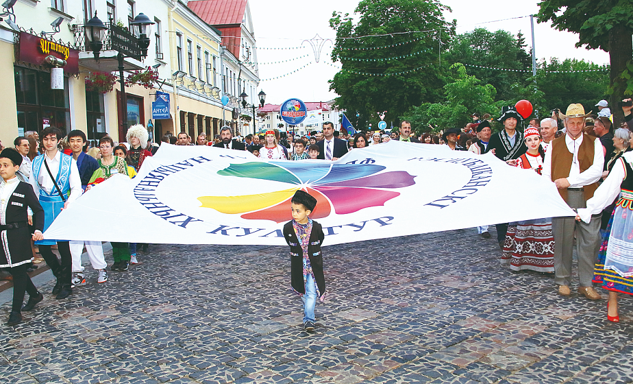 ●По центральным улочкам старого Гродно в национальных костюмах прошли свыше 700 участников из 53 общин, которые объединили представителей 27 национальностей.