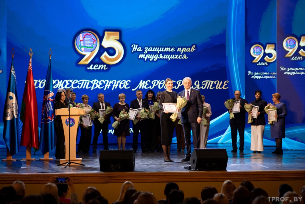 Кульминацией праздника стало награждение. На сцене чествовали лучших: руководителей первичек, правовых и технических инспекторов труда, активистов.