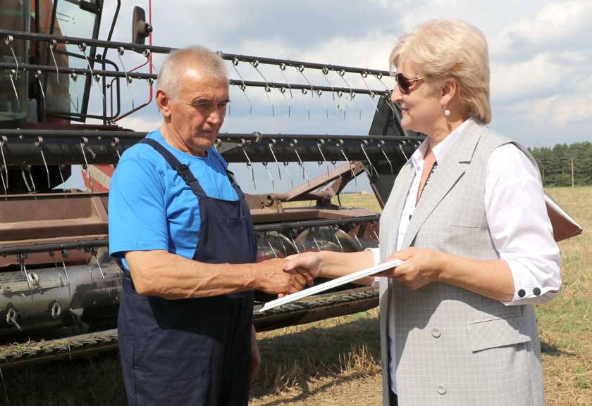 Вот и подходит к концу уборочная страда. Во всех районах Гродненской области идет активное награждение передовиков уборочной кампании-2023. Председатель Гродненской областной организации профсоюза работников госучреждений Тамара Стасевич также присоединилась к этой доброй традиции. С этой целью она посетила Дятловский район, чтобы вручить денежные сертификаты экипажу комбайна, который показал отличные результаты в ходе нынешней уборочной кампании.
