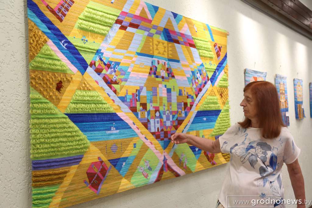 – «Гродзеншчыну квітнеючую» я выполнила из шерстяных и хлопковых нитей разных цветов. На полотне представлены гродненский Фарный костел, Сынковичская Церковь Святого Архангела Михаила и другие достопримечательности нашей прекрасной Гродненщины, – поделилась народный мастер по изготовлению гобеленов Елена Шунейко.