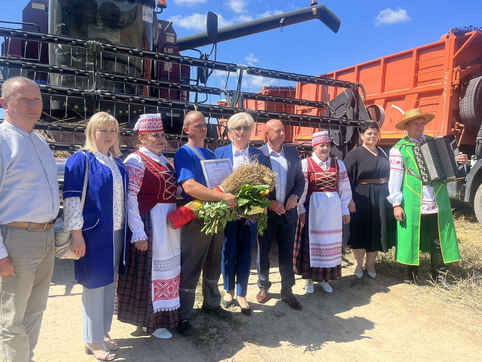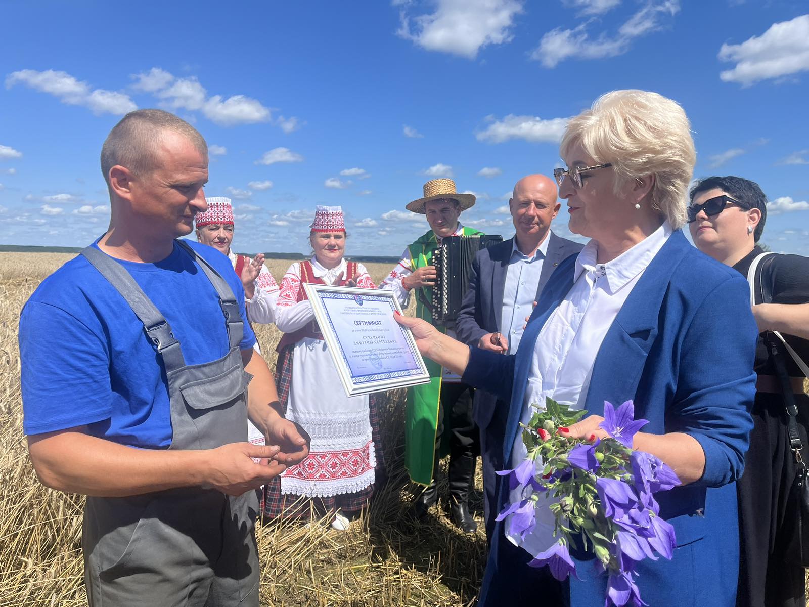 К награждению с большим букетом цветов и символичным снопком нового урожая присоединились главный агроном Иван Полуянцевич и председатель первички Ольга Сухецкая.
