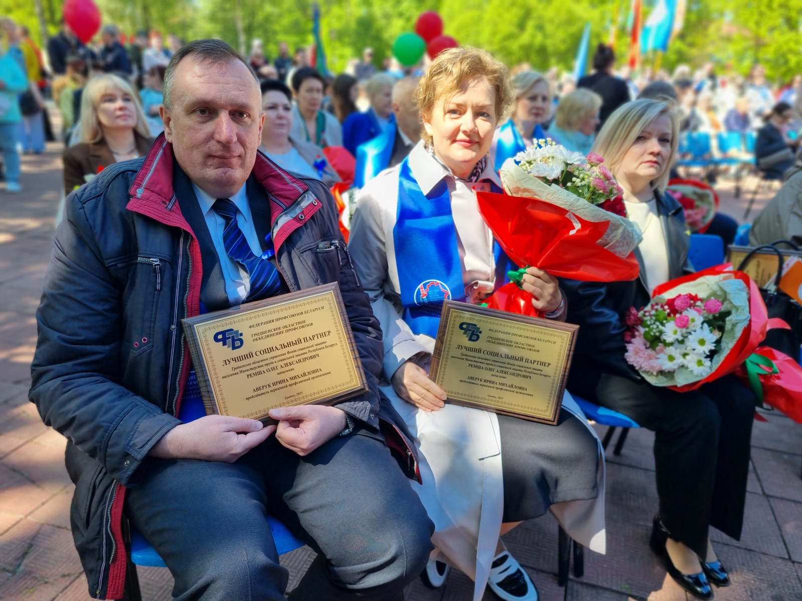 Вклад Олега Ремшы (начальник областного управления Фонда социальной защиты)и Ирины Аверук (председатель первичной профсоюзной организации) в развитие социального партнёрства был отмечен памятными наградами.
