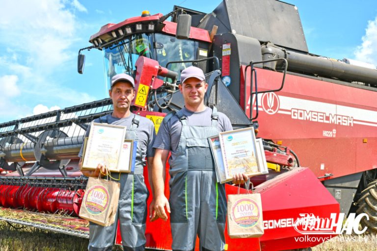 Преодолели заветную планку намолота в 1 000 тонн на отечественном комбайне КЗС 2124 ОАО «Гомсельмаш» старший комбайнер Алексей Шевчук и его помощник Петр Бубнов, сообщает volkovysknews.by. Поблагодарить экипаж за профессионализм, качественную работу и отличный результат приехали на поле сельхозпредприятия член Совета Республики Национального собрания Республики Беларусь, председатель Волковысского райисполкома Дмитрий Захарчук, председатель Гродненского областного объединения профсоюзов Юрий Алексей, председатель Гродненской областной профсоюзной организации Белорусского профсоюза работников АПК Михаил Ситько, директор КСУП «Неверовичи» Казимир Воробей и председатель Волковысской районной профсоюзной организации работников АПК Валентин Заяц. Героев жатвы наградили дипломами и денежными премиями.