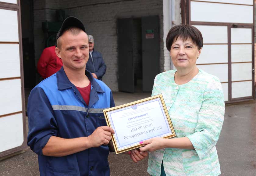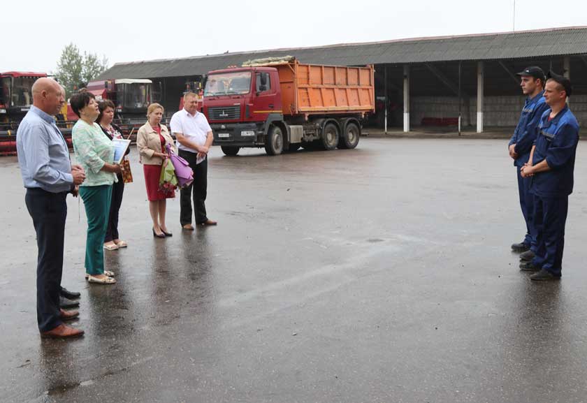 Разам з дырэктарам гаспадаркі Сяргеем Францішчыкам і старшынёй прафсаюзнай арганізацыі Вольгай Сухецкай яны павіншавалі Дзмітрыя Бяляўскага з важкім дасягненнем і падзякавалі лепшаму камбайнеру Дзмітрыю Сухецкаму за добрасумленную працу, пажадалі ім і ў далейшым уносіць уклад у “рэспубліканскі” каравай, пастаянна імкнуцца да “перадавых” мэтаў, каб кожны выхад у поле суправаджаўся пазітыўным настроем, сонечным надвор’ем і “агеньчыкам” энтузіязму ў душы. Уручылі памятныя падарункі, букеты кветак і грашовыя сертыфікаты.