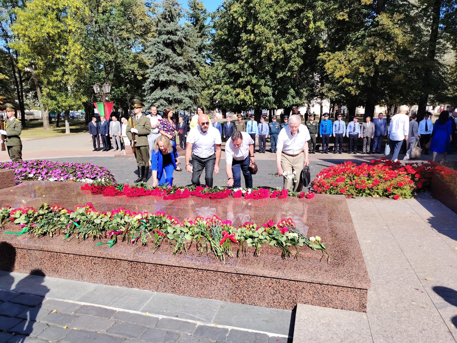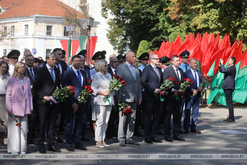 Дань памяти и глубокой признательности героям, сложившим головы за нашу Победу, отдали руководители области и города, представители трудовых коллективов, учреждений образования, горожане. В церемонии также приняли участие гости, прибывшие в Гродно в эти праздничные дни: из китайского города Суйнин, российских Санкт-Петербурга, Краснодара, Дзержинска, муниципального образования Щукино города Москвы.