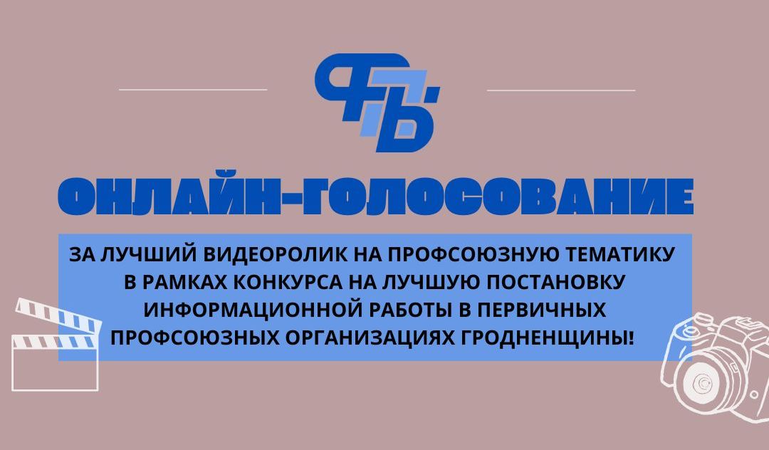 Гродненское областное объединение профсоюзов запускает онлайн-голосование за лучший видеоролик на профсоюзную тематику в рамках конкурса на лучшую постановку информационной работы в первичных профсоюзных организациях Гродненщины!