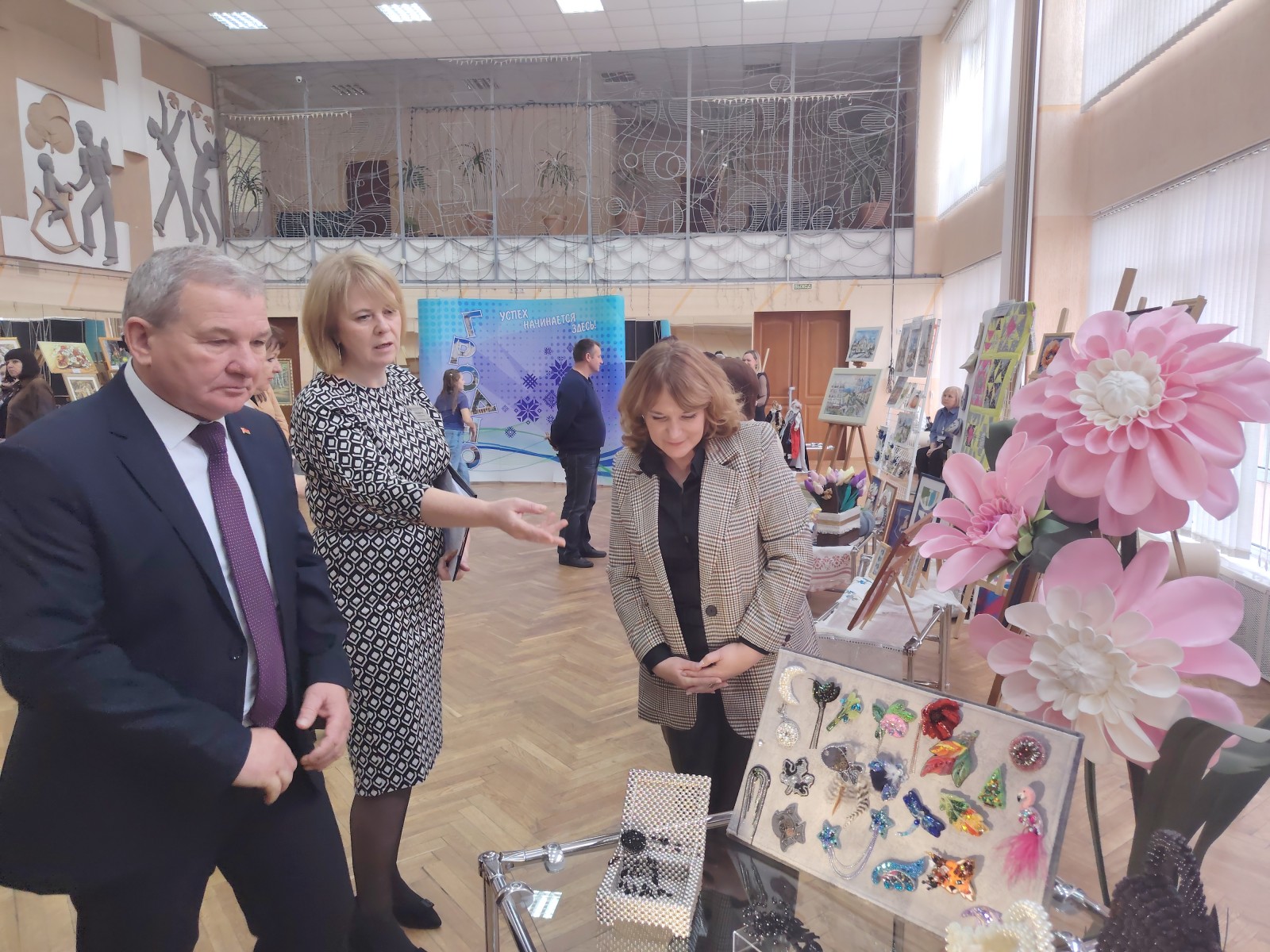 В фойе развернулась выставка декоративно-прикладного искусства, которая привлекла внимание всех присутствующих. Участники представили свои творческие работы, которые никого не оставили равнодушными, в том числе членов жюри.