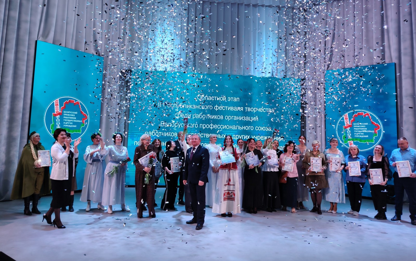 В завершении фестиваля состоялась церемония награждения. Иван Езепчик, председатель Гродненской областной организации Профсоюза работников госучреждений вручил дипломы участникам фестиваля, а Сергей Потапенко - заслуженные награды лауреатам I, II, III степени.
