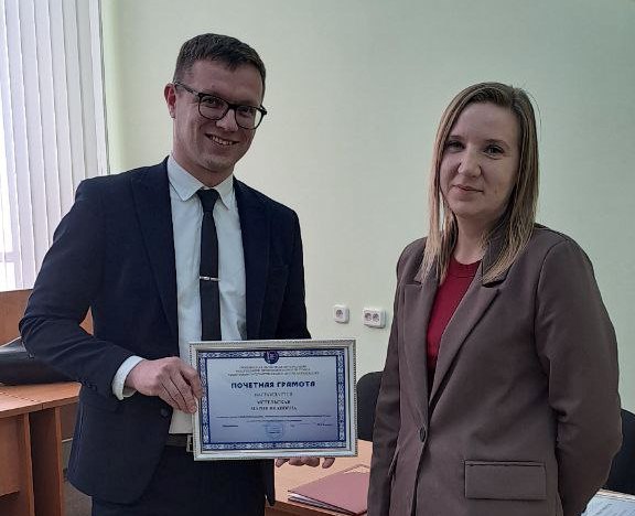 Виктор Зарадей, главный специалист областного профсоюза, поблагодарил собравшихся за активную жизненную позицию и вручил Почетные грамоты областного комитета за плодотворную работу и личный вклад в профсоюзное движение Гродненщины Андрею Куксе, заместителю начальнику отдела организации исполнения бюджета, председателю профсоюзного комитета; Марие Метельской, секретарю приемной руководителя, заместителю председателя профсоюзного комитета; Светлане Рожковой, начальнику отдела проведения проверок по поручениям органов уголовного преследования и судов, члену профсоюзного комитета; Анне Малец, главному специалисту отдела учета исполнения бюджета, члену профсоюзного комитета.jpg)