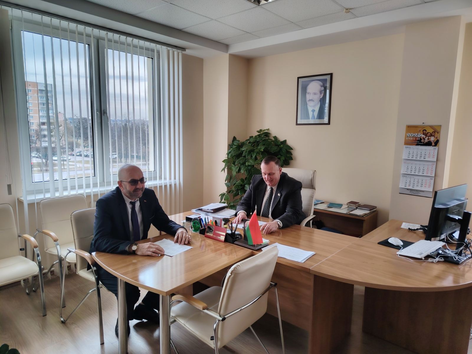 Визит начался с беседы с начальником управления Олегом Ремшей. Иван Езепчик обсудил текущие задачи и перспективы сотрудничества между профсоюзной организацией и управлением. Особое внимание было уделено вопросам социальной защиты работников, улучшения условий труда и реализации программ оздоровления.