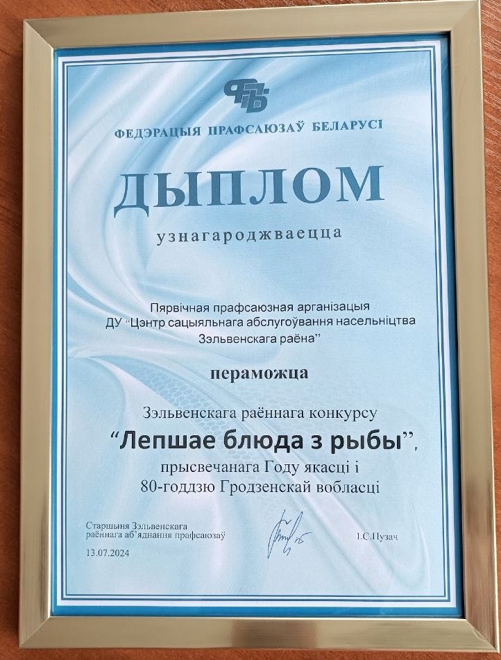1 место у Зельвенского ЦСОН в кулинарном конкурсе "Лучшее блюдо из рыбы"
