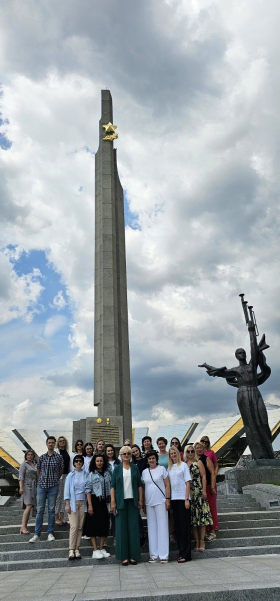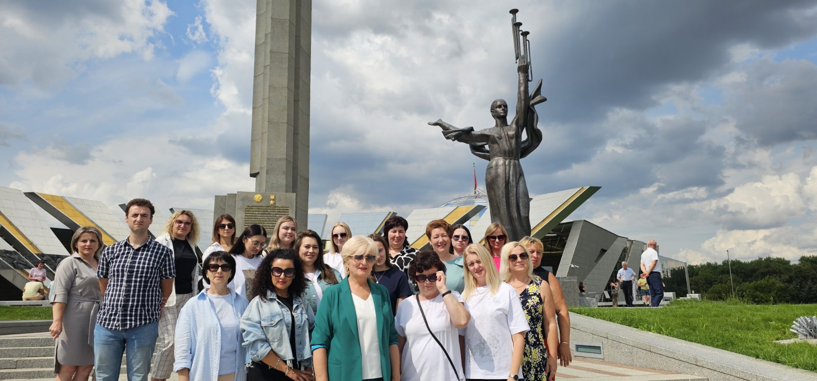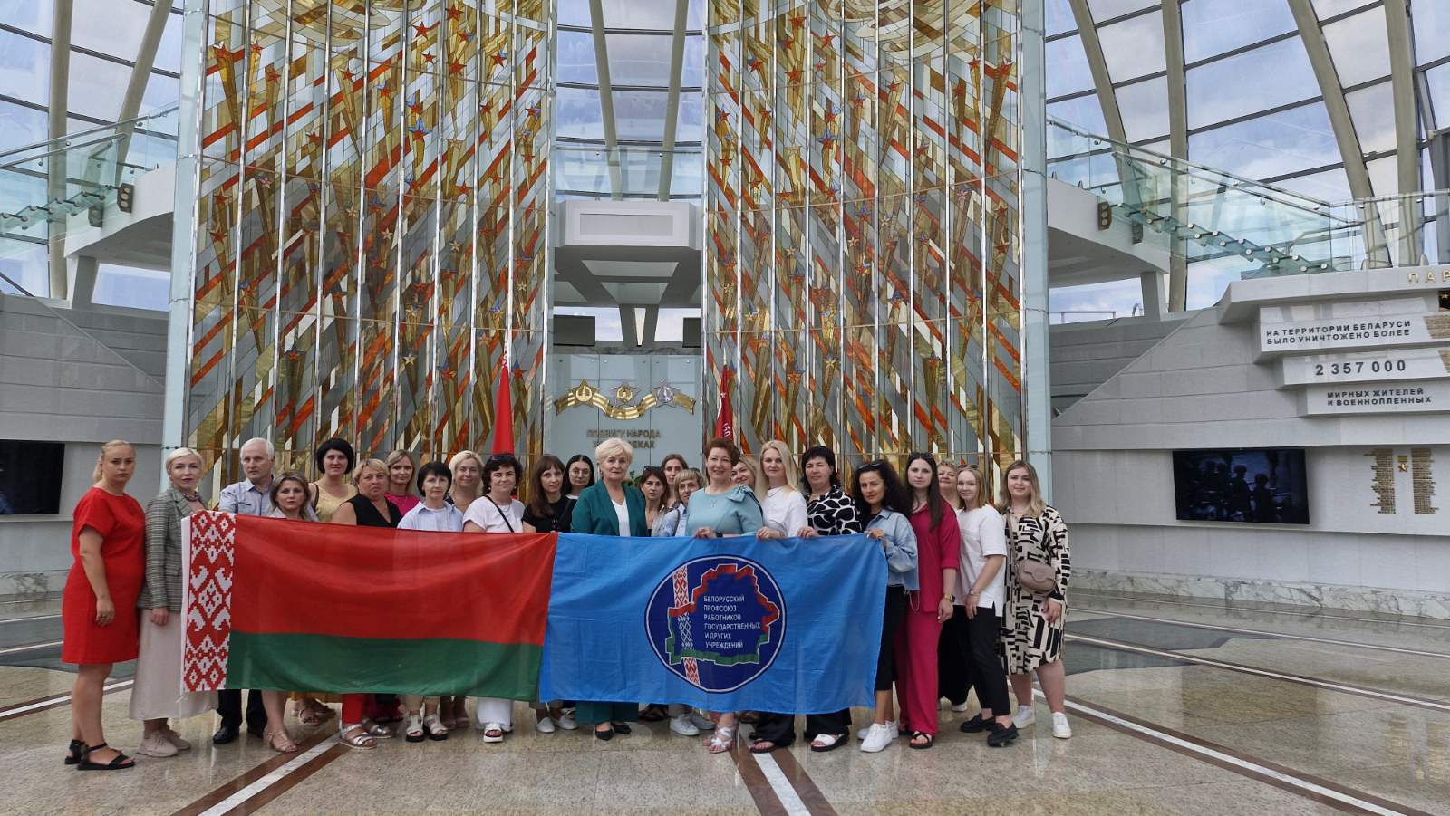Перед экскурсией профактив Гродненской областной организации Профсоюза работников госучреждений во главе с председателем Тамарой Стасевич у стен самого величественного музея «живого прошлого» почтили память о героях минутой молчания.