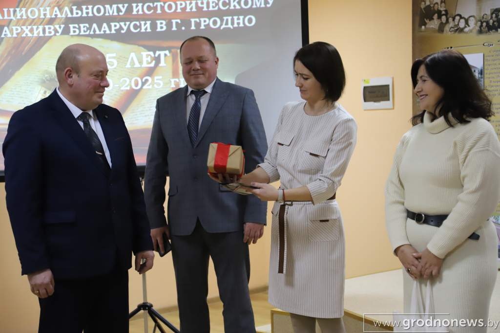 Со знаменательной датой архивистов поздравили почетные гости: директор Национального исторического архива Беларуси Михаил Глушаков, начальник главного управления юстиции Гродненского облисполкома Елена Юргель и другие.