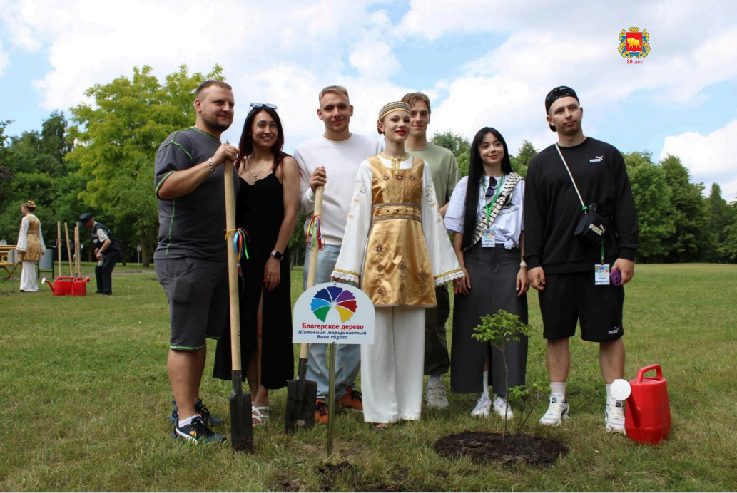 Посадили свое растение и белорусские блогеры. Рядом разместился морщинистый шиповник.