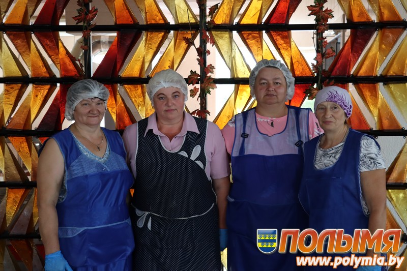 — У калектыве працуе адзін повар, тры раздатчыцы і адна пасудамыйшчыца, — расказвае Вольга Леанідаўна. — На працягу ўсяго года, акрамя зімы, мы гатуем не менш за 90 абедаў і каля 40 вячэр. А ў час пасяўной і ўборачнай кампаній колькасць абедаў павялічваецца да 120, а вячэр да 70.