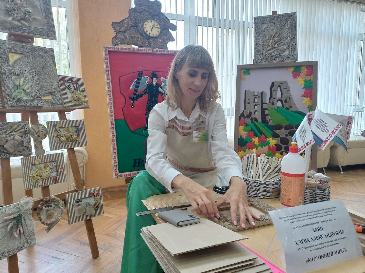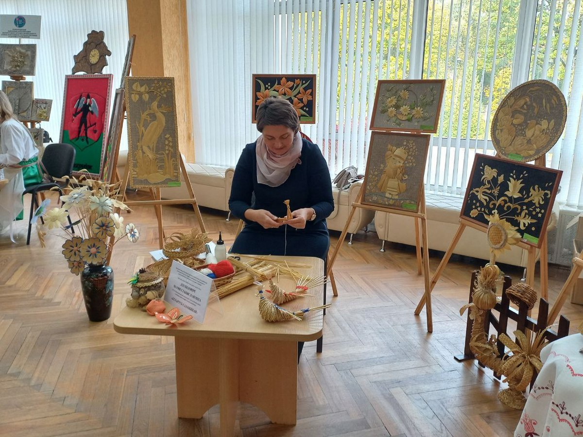 Мария Дземидович представила на выставке экспозицию под названием «Беларусь саламяная», в которую вошли работы в технике аппликации и плетения из соломки. Мария Станиславовна работает воспитателем в Василишковском доме-интернате для детей с особенностями психофизического развития.
