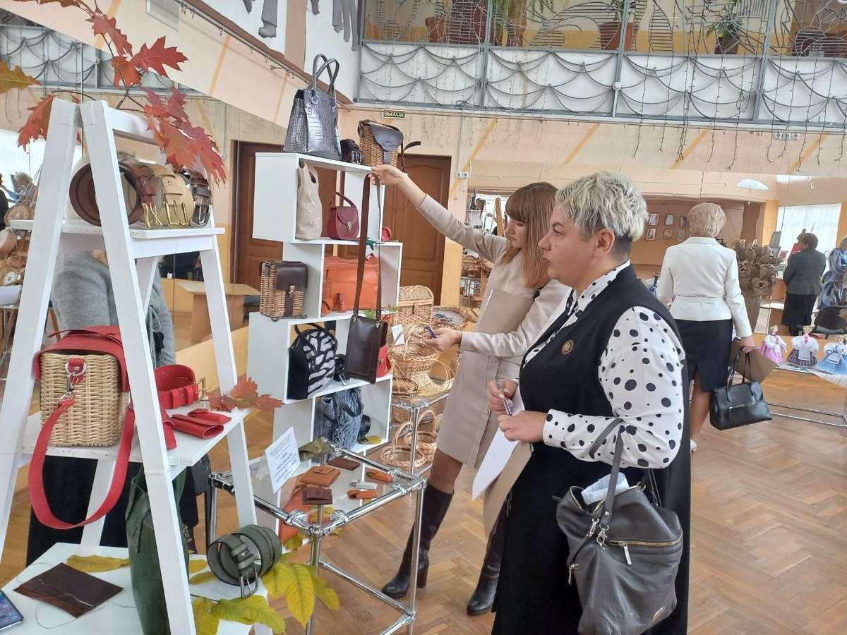 «Женских рук прекрасное творенье» – так поэтично назвала свою экспозицию Ирина Савчик из Лиды. Женщина изготавливает различные изделия из кожи: сумки, кошельки, чехлы для документов, ключницы и др. Среди работ Ирины Аркадьевны есть и необычные сумки из лозы и валяной шерсти.