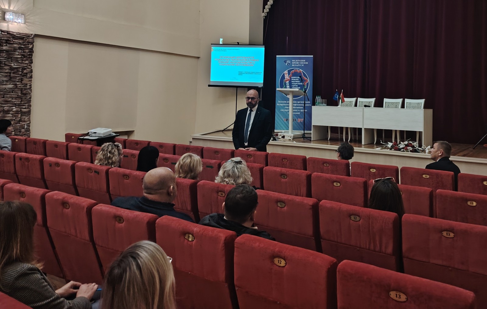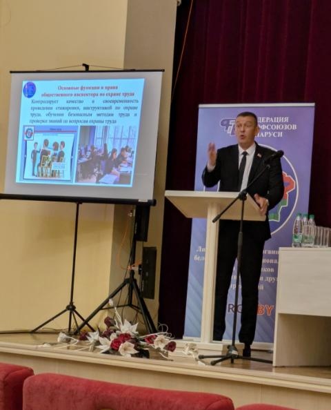 В семинаре приняли участие главный технический инспектор труда Республиканского комитета Белорусского профессионального союза работников государственных и других учреждений Артем Звягин и технический инспектор труда Гродненской областной организация Белорусского профессионального союза работников государственных и других учреждений Ирина Богачева.
