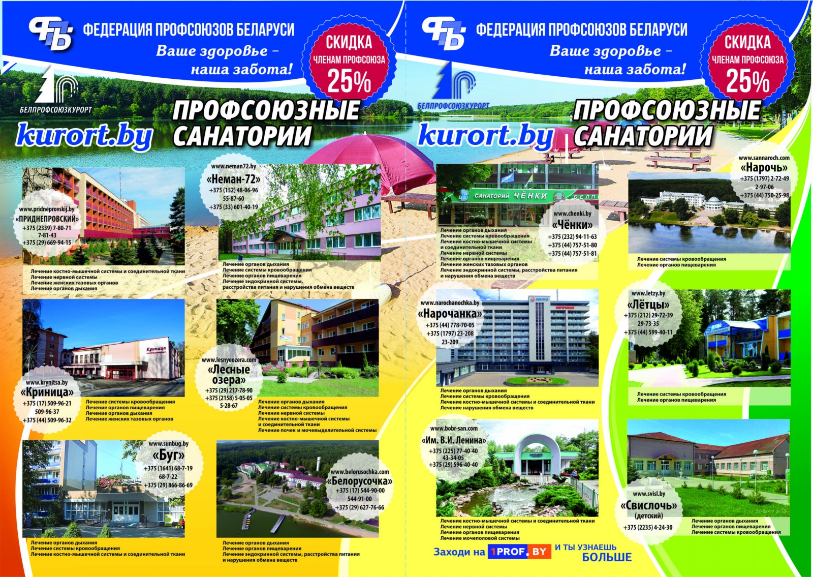 Контакты санаториев УП «Белпрофсоюзкурорт»