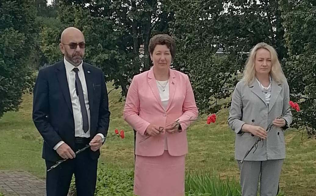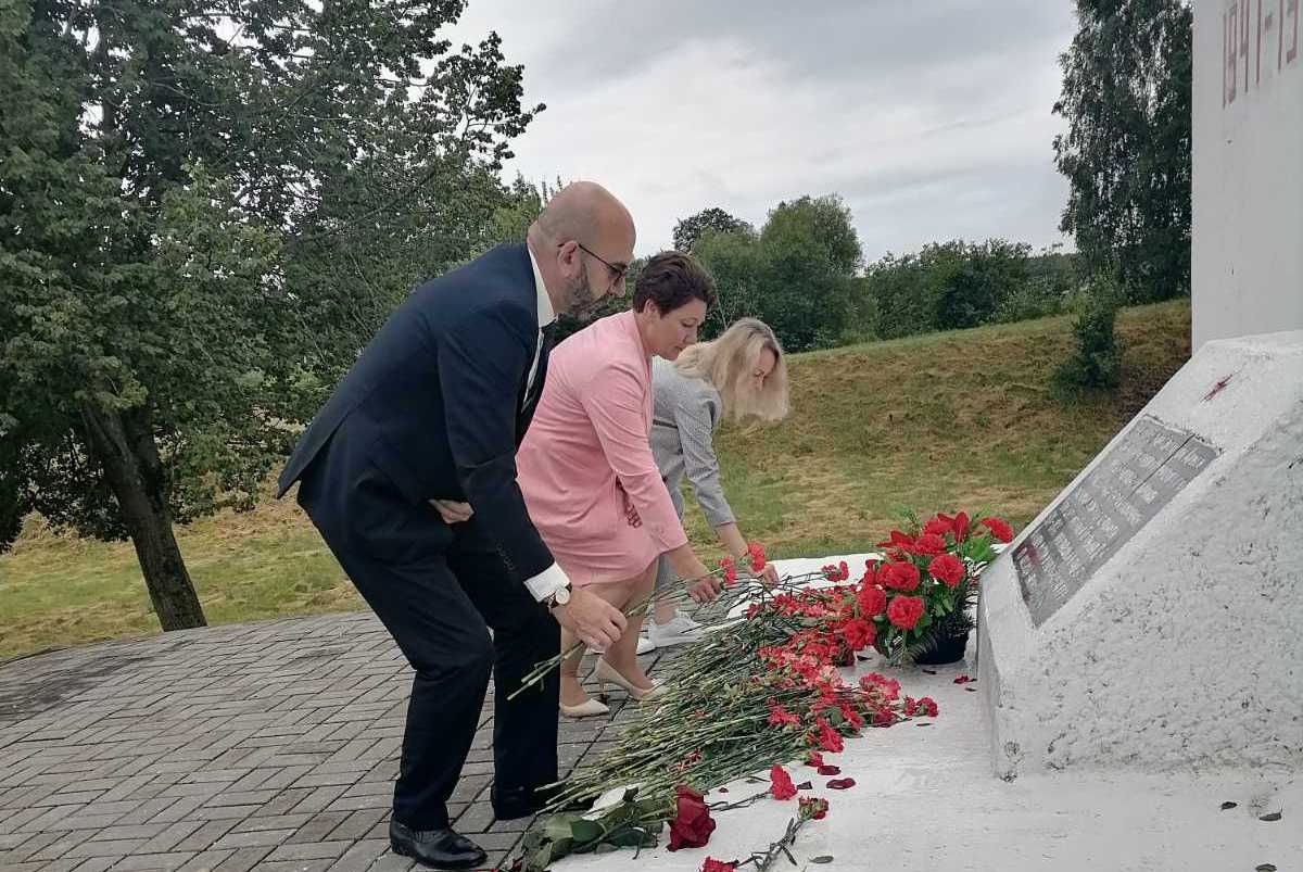В память освобождения Ошмянского района от немецко-фашистских захватчиков представители профсоюза во главе с председателем Гродненской областной организации Иваном Езепчиком возложили цветы к памятному знаку советским воинам и Герою Советского Союза Дмитрию Горбунову.