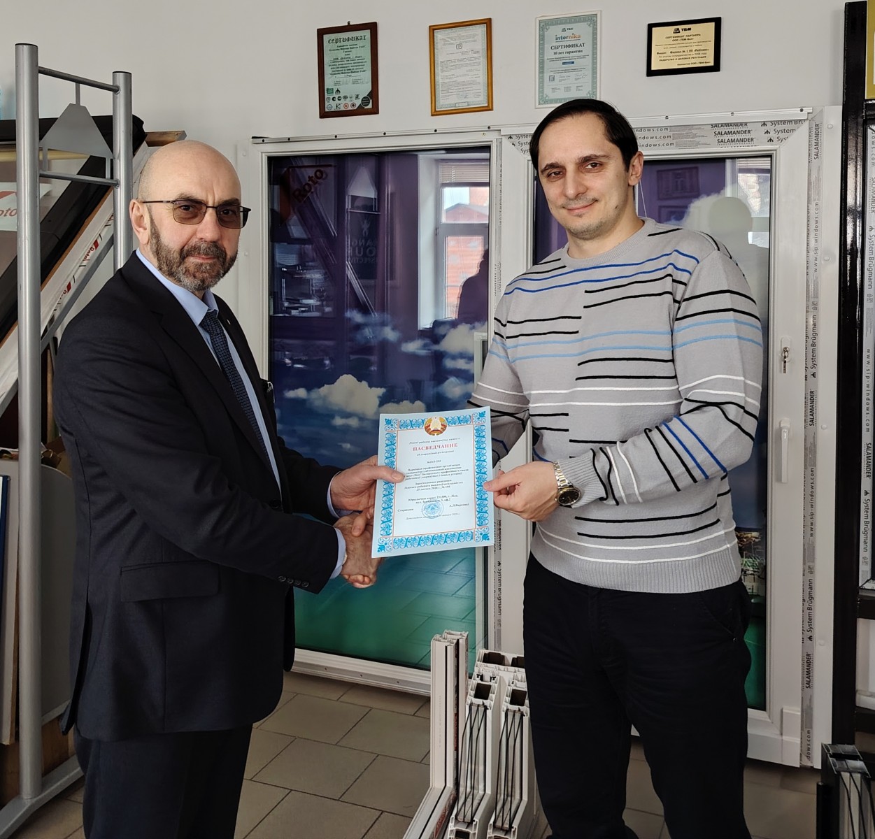 Ещё на одну первичную профсоюзную организацию в г. Лида стало больше: официальное свидетельство о государственной регистрации вручил Иван Езепчик, председатель Гродненской областной организации Профсоюза госучреждений, руководителю общества с ограниченной ответственностью «РеСпект-Лида» Евгению Хвойницкому.