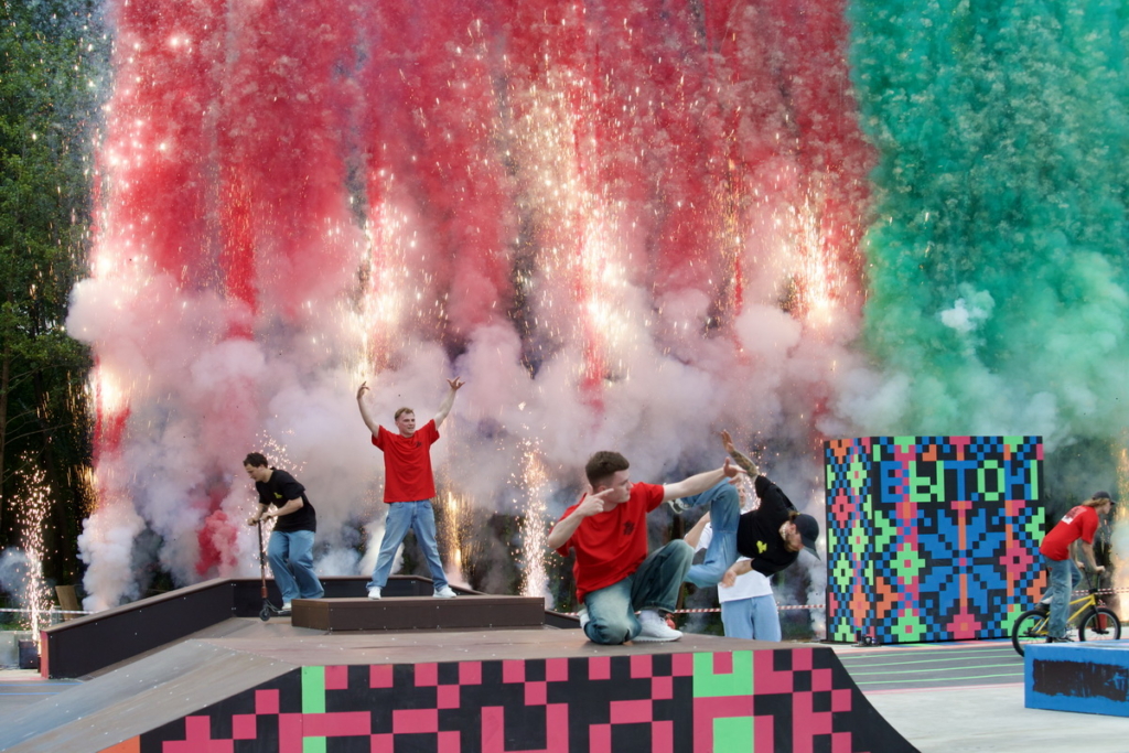 Церемония открытия скейт-роллер-парка и фестиваля прошла с размахом: фейерверки, дымовое шоу и огненные пушки. Торжественную ленточку открытия перерезали Виктор Лукашенко и председатель Витебского облисполкома Александр Субботин.