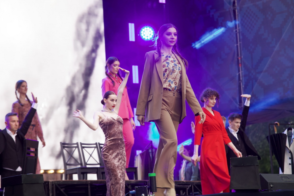 Вечернюю программу второго дня фестиваля продолжили театрализованная музыкальная постановка «Модны вадэвiль» от Театра юного зрителя и проект «Роднае-моднае», в котором белорусские дизайнеры представили свои коллекции одежды.