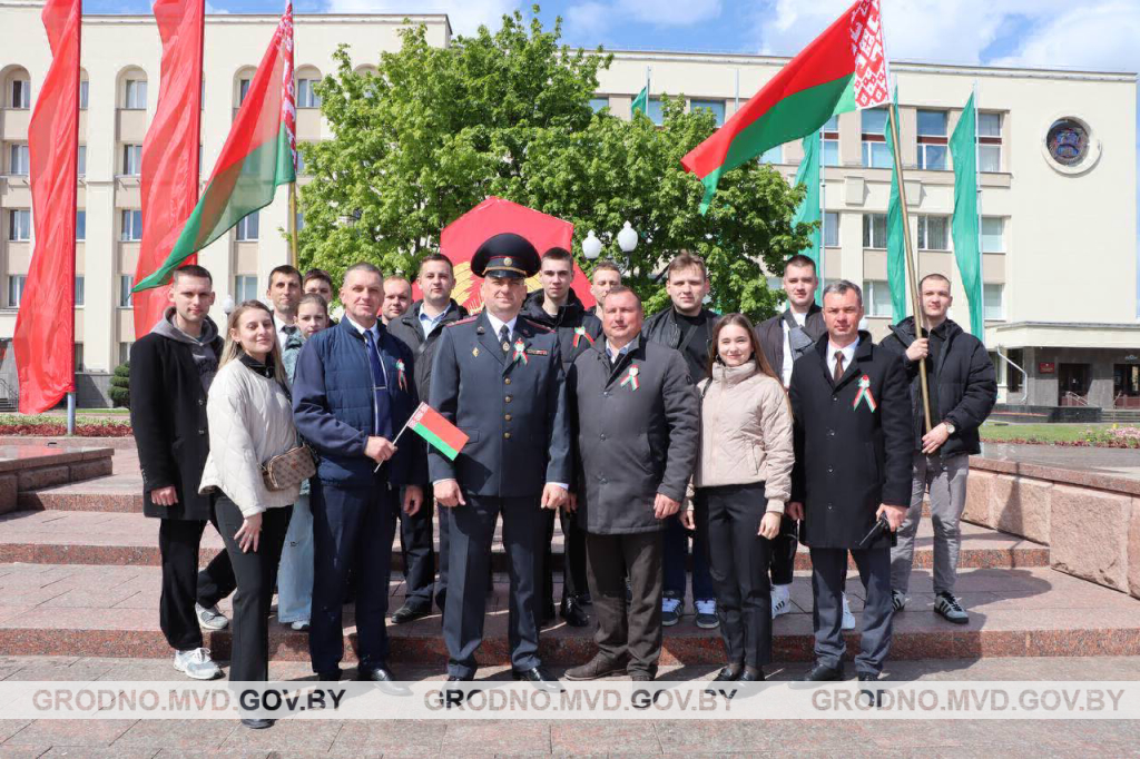 Военнослужащие Гродненского пограничного отряда внесли на площадь полотнище Государственного флага Республики Беларусь. 250 учащихся вместе с присутствующими на патриотическом мероприятии вместе исполнили гимн. В этот момент на флагштоке подняли Государственный флаг Республики Беларусь. Кроме того, молодежь торжественно дала клятву верности символике нашей страны и родной земле.