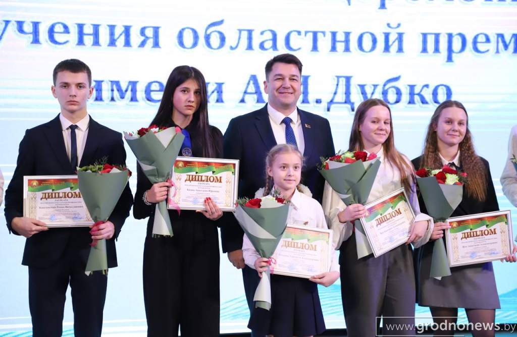 Церемония вручения премии имени Героя Беларуси Александра Иосифовича Дубко состоялась в областном Дворце творчества детей и молодежи. В числе лауреатов – учащиеся учреждений общего среднего, среднего специального образования, студенты вузов, добившиеся высоких результатов в учебной, спортивной и творческой деятельности. Это призеры и победители различных республиканских и международных олимпиад, турниров и конкурсов. География учебных заведений, которые представляют лауреаты премии, охватывает практически все районы области.