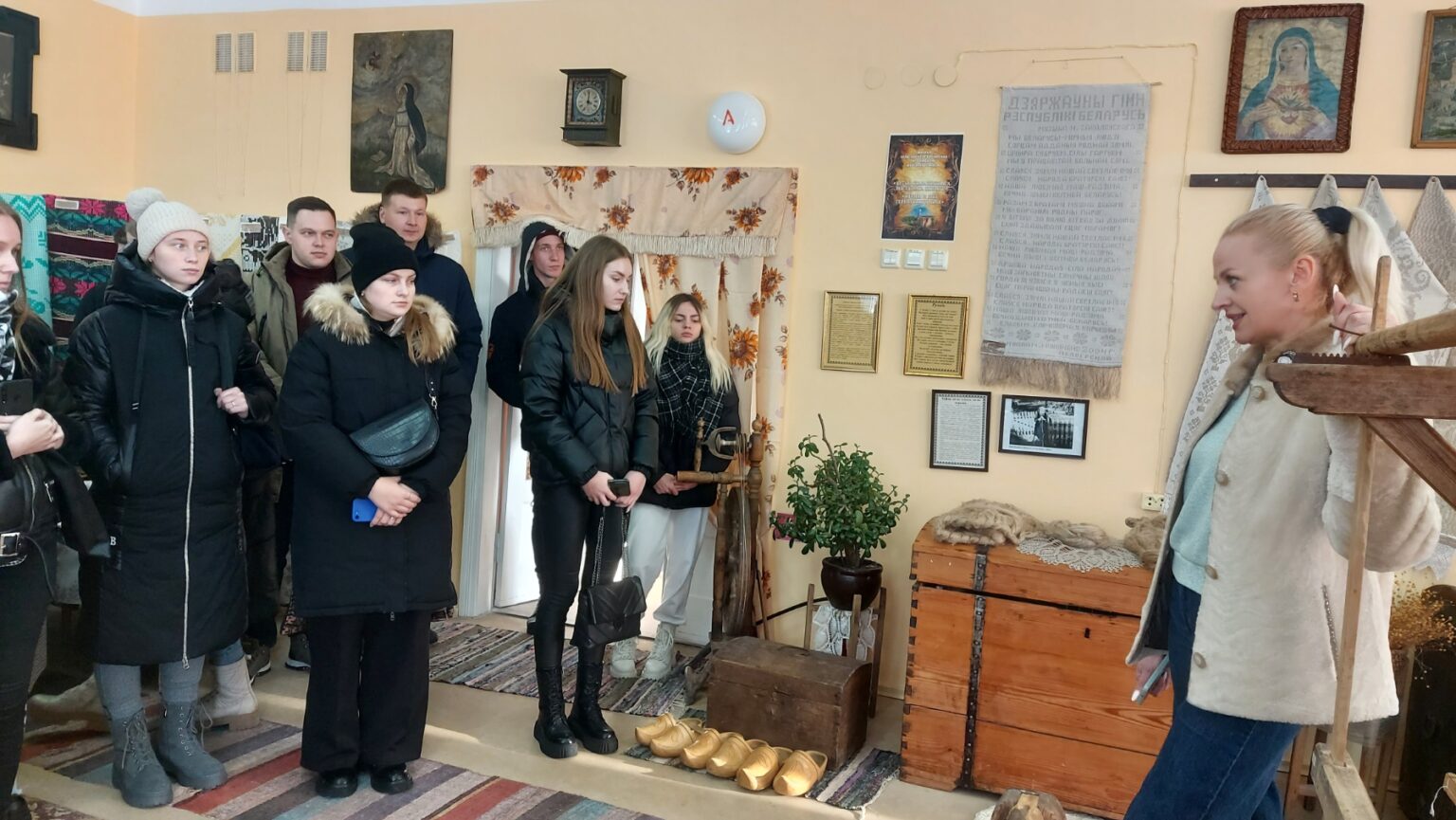Так, профсоюзная молодёжь посетила этнографический музей в аг.Рымдюны, где заведующая музеем Наталья Недалтовская показала предметы быта наших предков, собранные в деревнях нашего района, поведала интересные факты о них, а также о том, как они стали экспонатами музея.