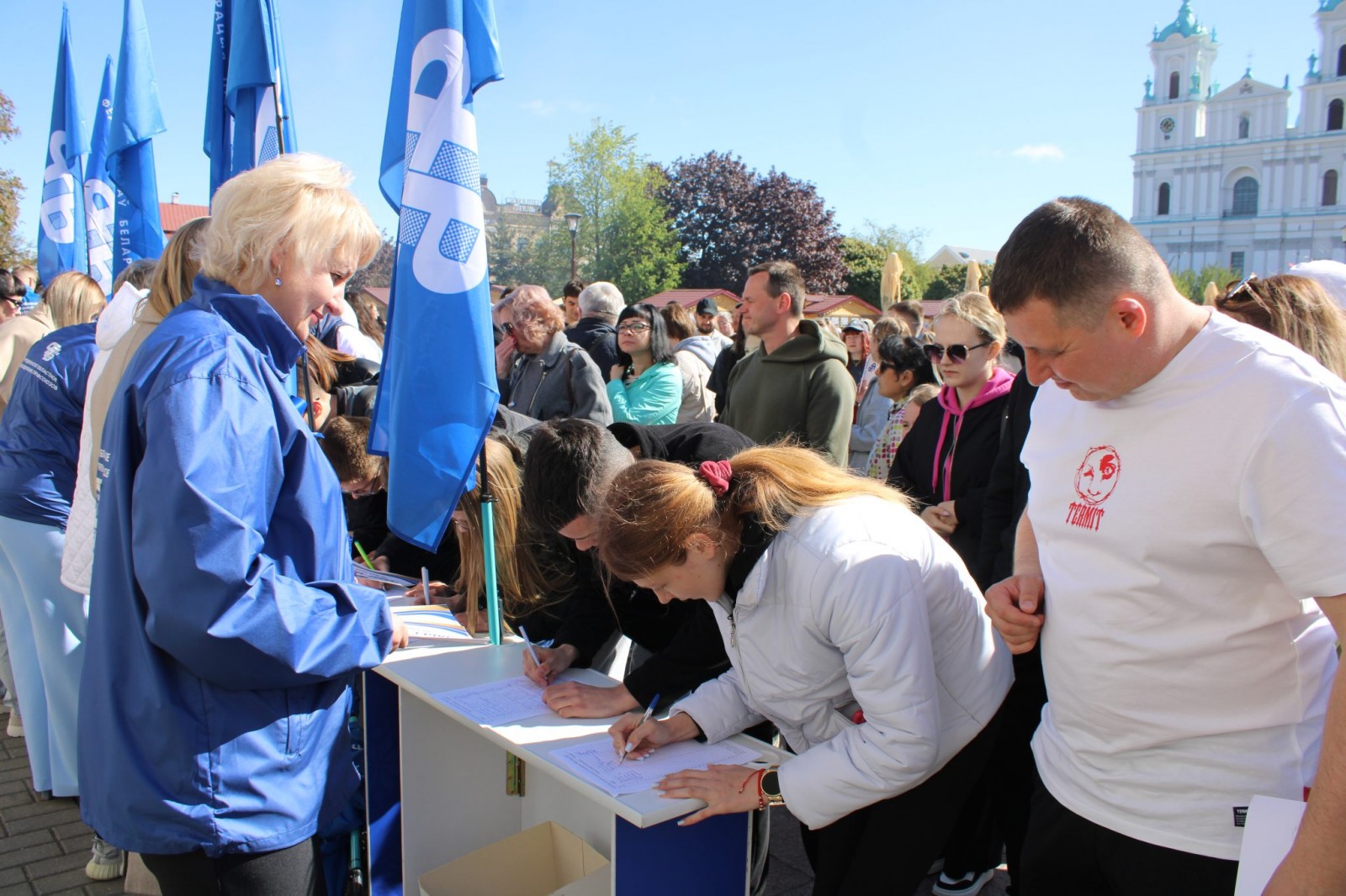 «Профсоюзы Гродненской области приложат все усилия, чтобы создать атмосферу праздника и единства. Начнется программа со ставшего уже традиционным «Забега Мира». В прошлом году он собрал порядка тысячи участников. Мы надеемся, что в этом году будет не меньшее количество желающих. На «Забег Мира», кстати, некоторые члены профсоюза приходят целыми семьями. Забег стартует в 11 часов с Советской площади, финиш — в парке Жилибера», — сказала Светлана Майнина. Каждый участник после прохождения дистанции получит памятную медаль.