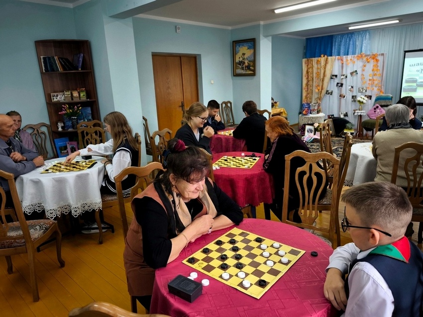 В рамках декады “Золотой возраст” и акции “Уважение. Забота. Ответственность” в отделении дневного пребывания для граждан пожилого возраста территориального центра социального обслуживания населения Ошмянского района прошел шашечный турнир “Мы вместе” среди людей “золотого” возраста и учащихся гимназии №1 г. Ошмяны, организованный специалистами отделения и работниками Ошмянского ФСК.