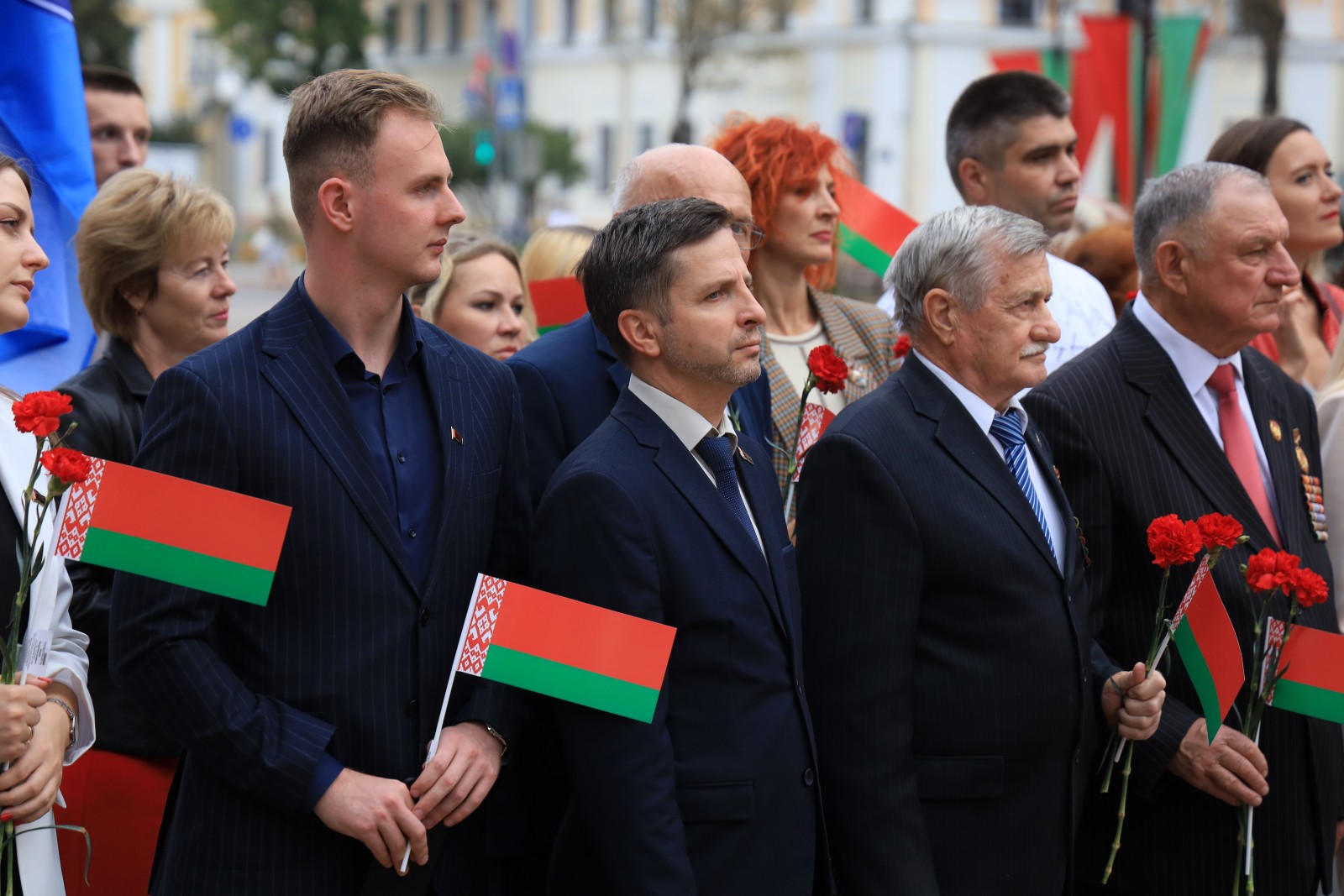 Участники почтили память погибших минутой молчания и возложили цветы у вечного огня Братской могилы советских воинов и партизан.