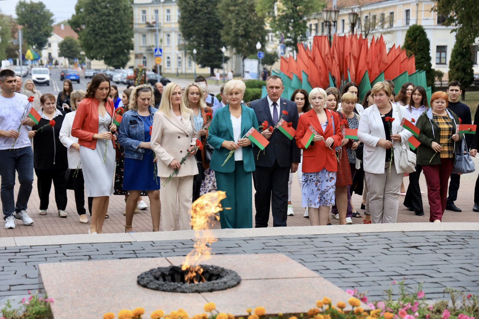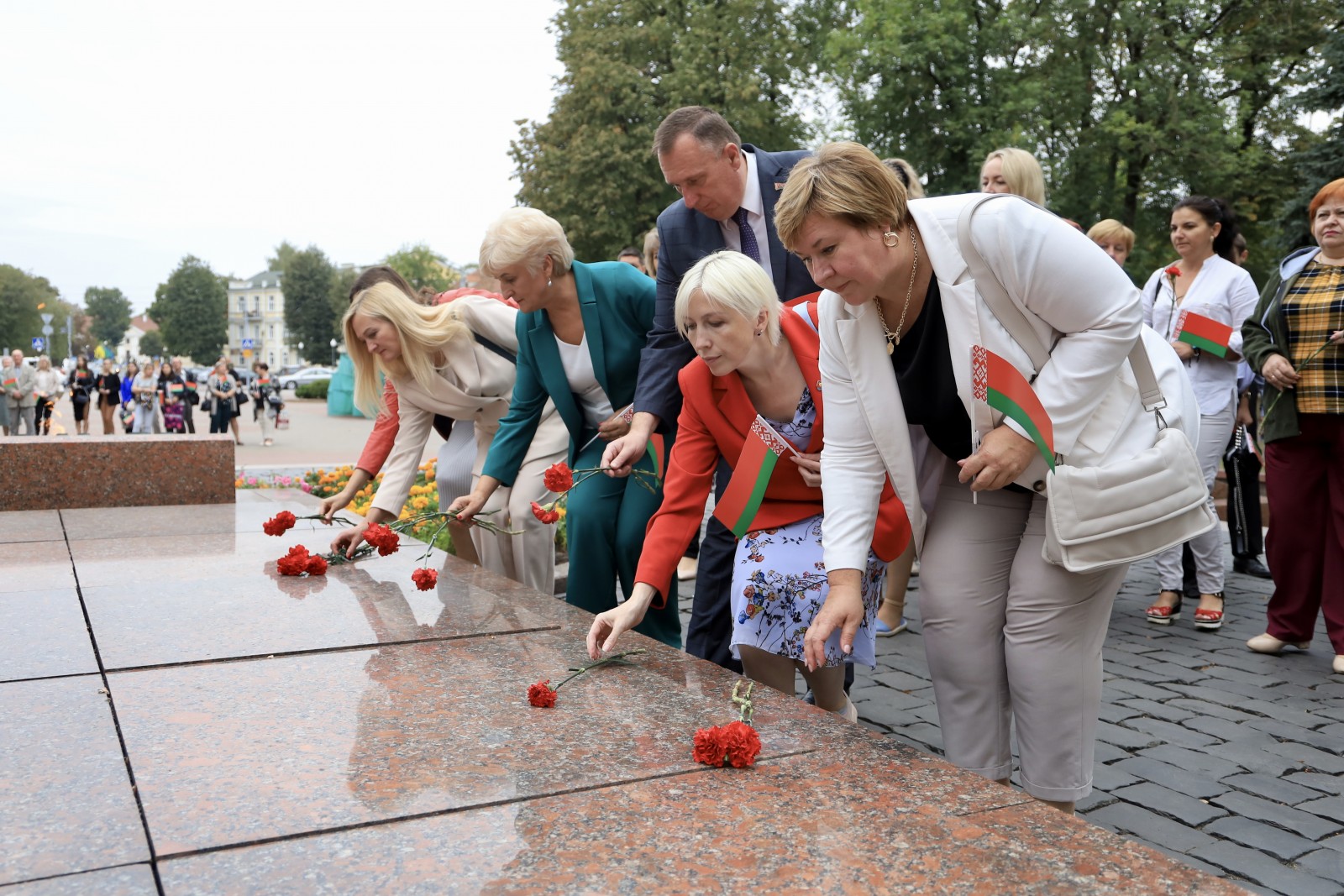 Тамара Стасевич, председатель Гродненской областной организации Профсоюза работников госучреждений, у вечного огня Братской могилы советских воинов и партизан отметила: