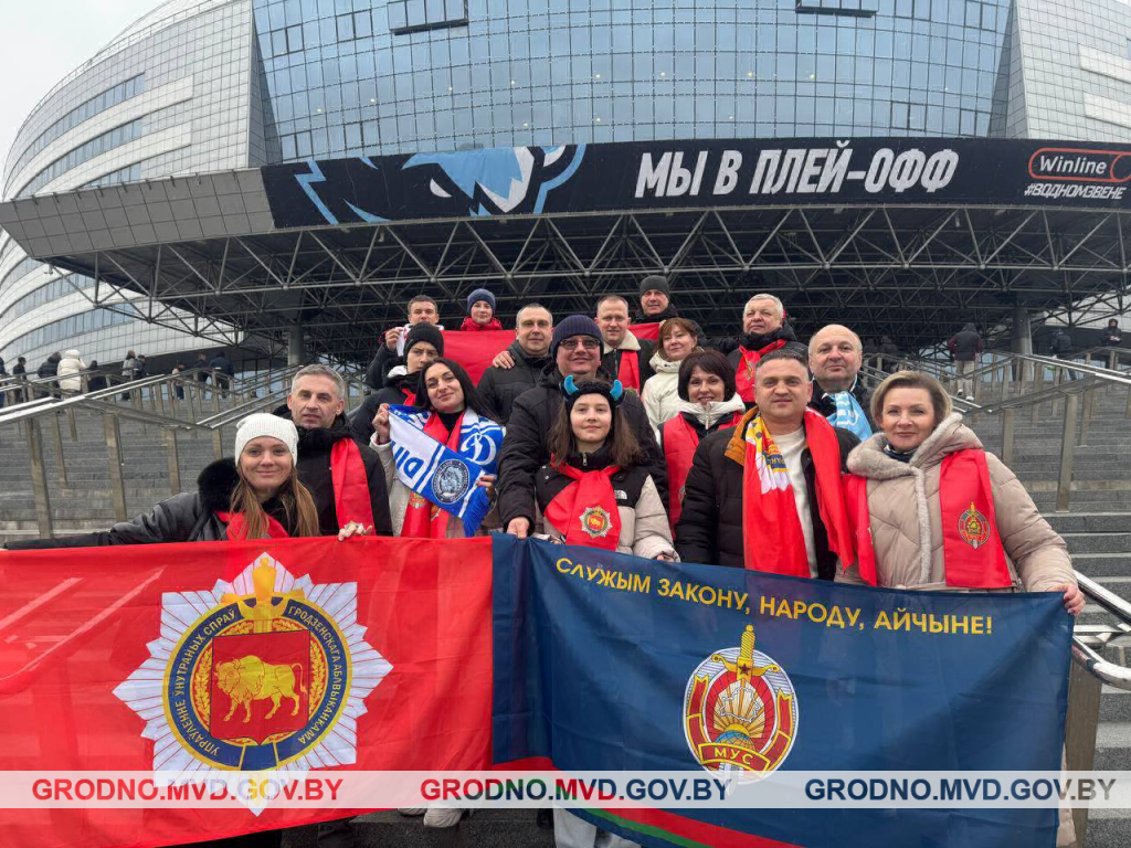 Во вторник сотрудники УВД Гродненского облисполкома вместе со своими семьями посетили главную хоккейную площадку страны – Минск-Арена, где состоялся поединок местного «Динамо» и «Сочи».