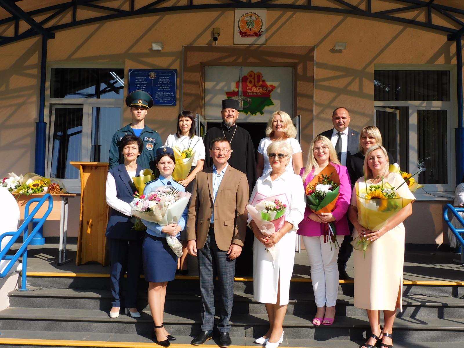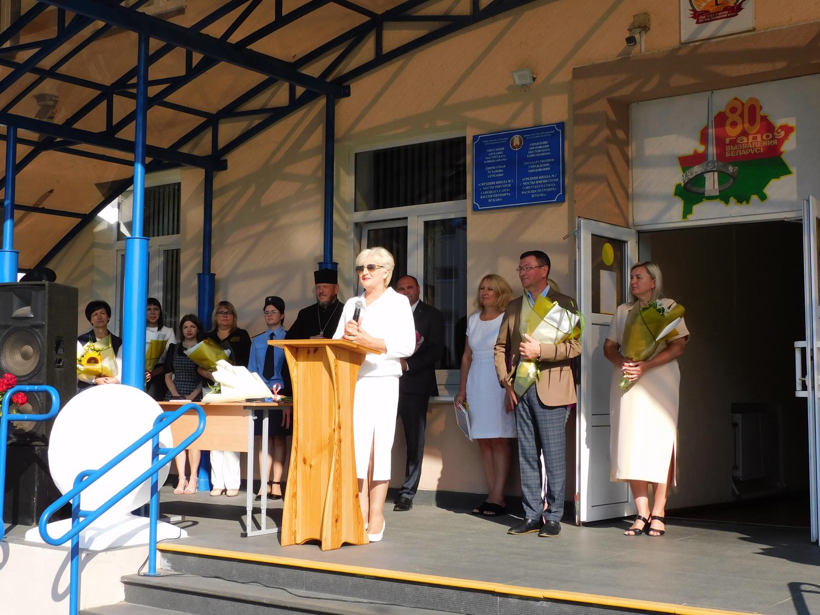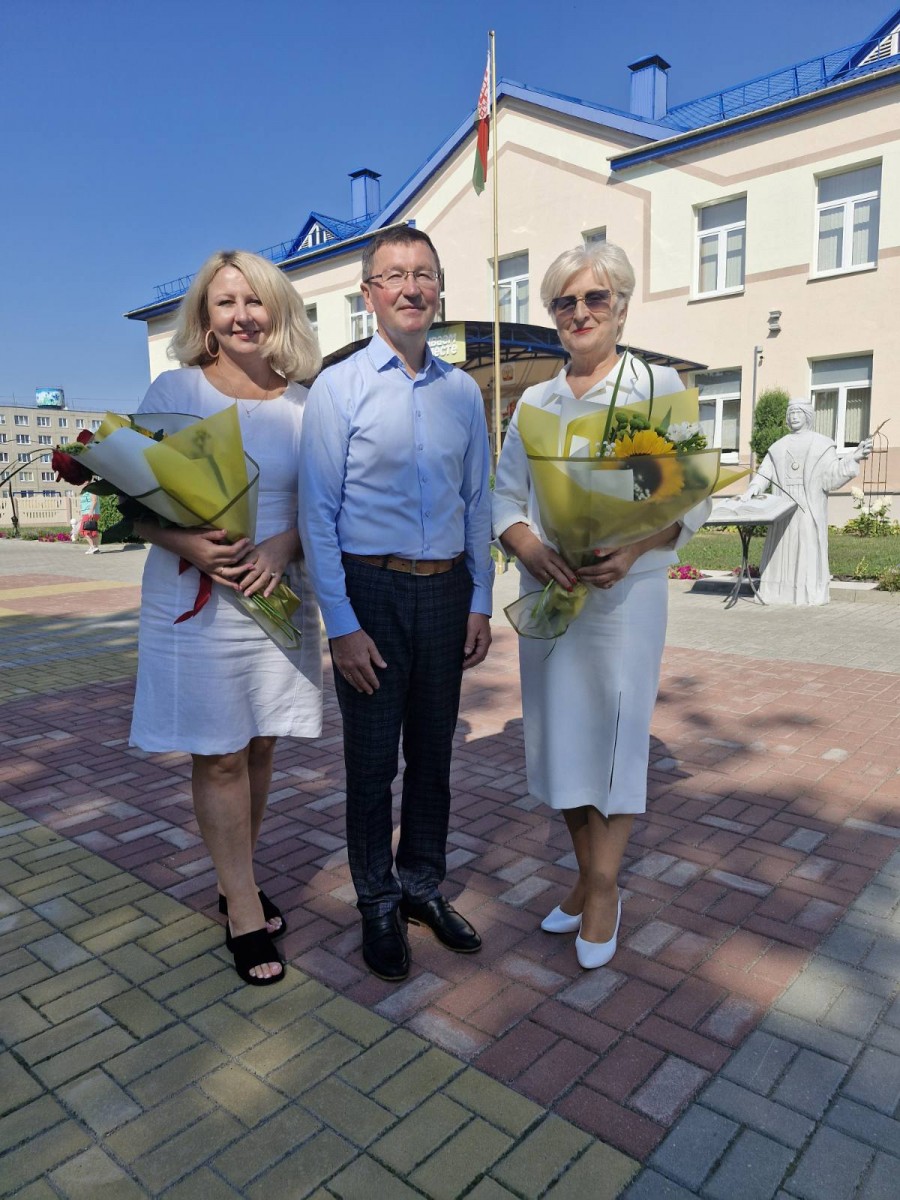 Председатель Гродненской областной организации Белорусского Профсоюза работников госучреждений Тамара Стасевич в самый главный День знаний приняла участие в торжественной линейке в ГУО «Средняя школа № 2 г. Мосты имени Героя Советского Союза Василия Петровича Жукова».