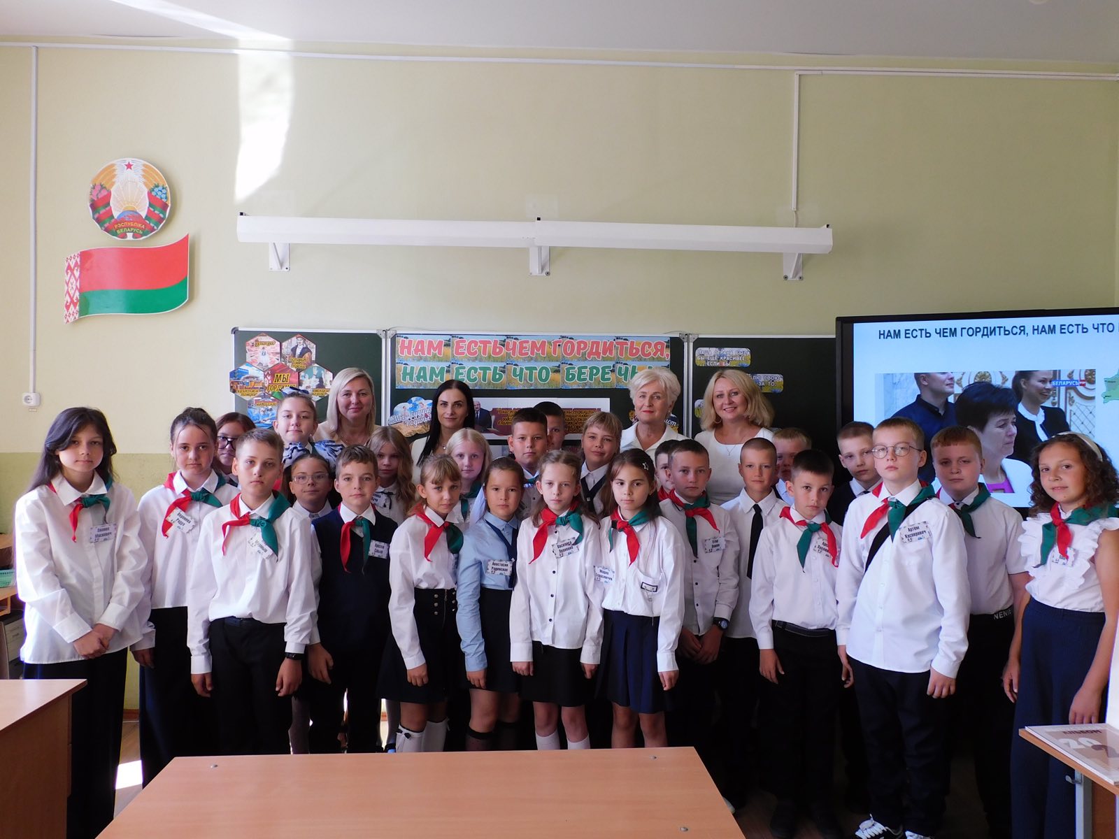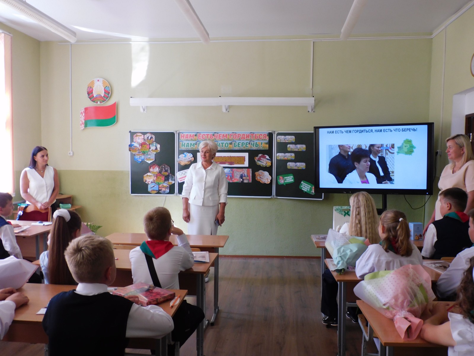 Традиционно первый урок в новом учебном году посвящен нашей Родине. И сегодня урок прошел по теме «Нам есть чем гордиться, нам есть что беречь!». Тамара Иосифовна рассказала о Республике Беларусь как о суверенном независимом государстве с многовековой историей и культурными традициями, о высоком уровне образовании, медицины, культуры, о промышленности и сельском хозяйстве: «Белорусам есть чем гордиться и очень важно сохранить все хорошее, что есть в нашей стране, для следующих поколений. 2024 год – это значимый год: 80 лет назад Беларусь была освобождена от немецко-фашистких захватчиков, 30 лет назад в нашей стране состоялись выборы первого Президента Республики Беларусь. И сегодня очень важно сохранить для потомков суверенитет, независимость, мир и традиции белорусского народа».