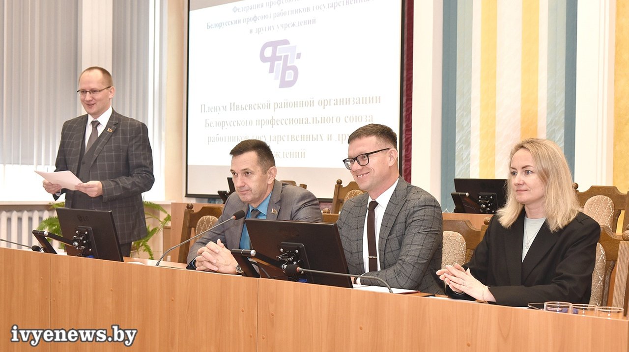 В г. Ивье прошел II пленум Ивьевской районной организации Белорусского профессионального союза работников государственных и других учреждений. Мероприятие открыл заместитель председателя районной организации Олег Герасимчук. В работе приняли участие: председатель Ивьевского районного исполнительного комитета Игорь Генец, заведующий организационным отделом Гродненской областной организации профсоюза Белорусского работников государственных и других учреждений Ольга Прохницкая и главный специалист по информационной, культурно-массовой работе и работе с молодежью Виктор Зарадей.
