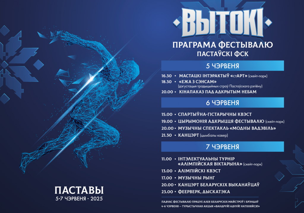 В 2025 году спортивно-культурный фестиваль «Вытокi» с 5 по 7 июня примет один из самых красивых городов Витебщины – Поставы