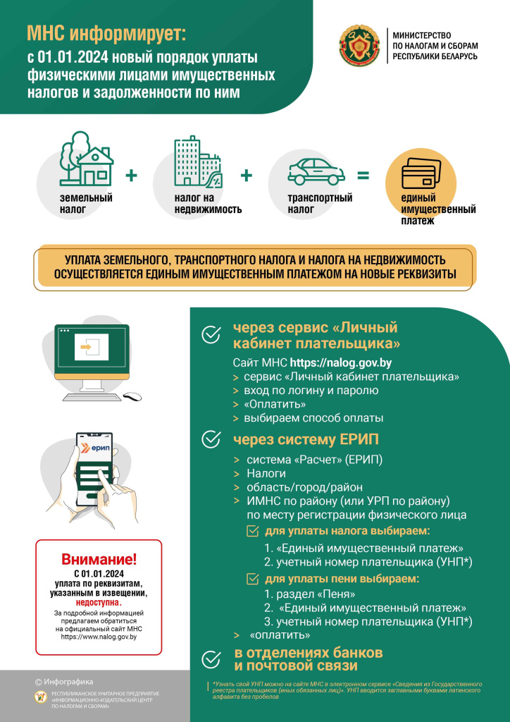 В Беларуси с 1 января введен единый имущественный платеж, сообщили БЕЛТА в Министерстве по налогам и сборам.