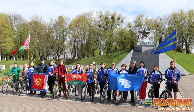 Цёплае сонечнае надвор’е, пярэдадзень Першамая сабраў прафсаюзных актывістаў пярвічных прафсаюзных арганізацый гаспадарак і прадпрыемстваў раёна, БРСМ і прадстаўнікоў грамадскіх арганізацый каля мемарыялу “Зорка” ў райцэнтры, дзе быў дадзены старт велапрабегу.