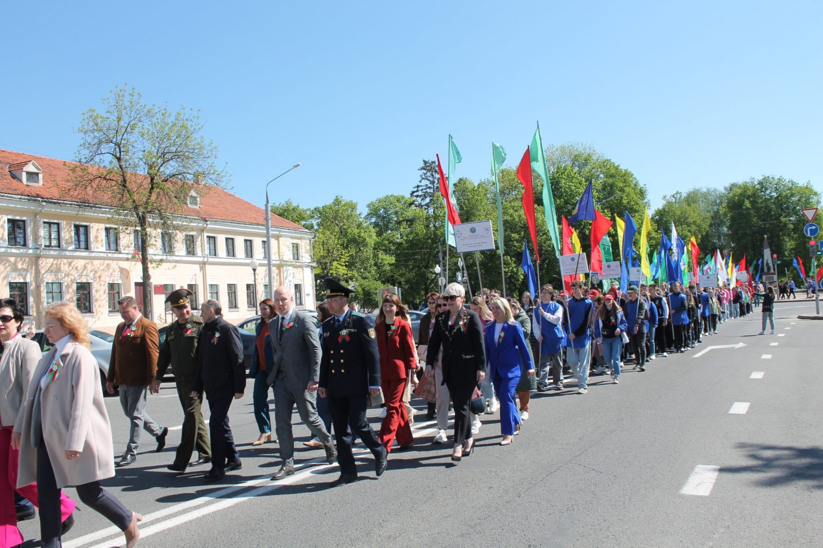 После торжественного митинга и возложения цветов у памятника воинам-освободителям в парке имени Жилибера, профсоюзный актив Гродненщины принял участие во впечатляющем торжественном шествии.