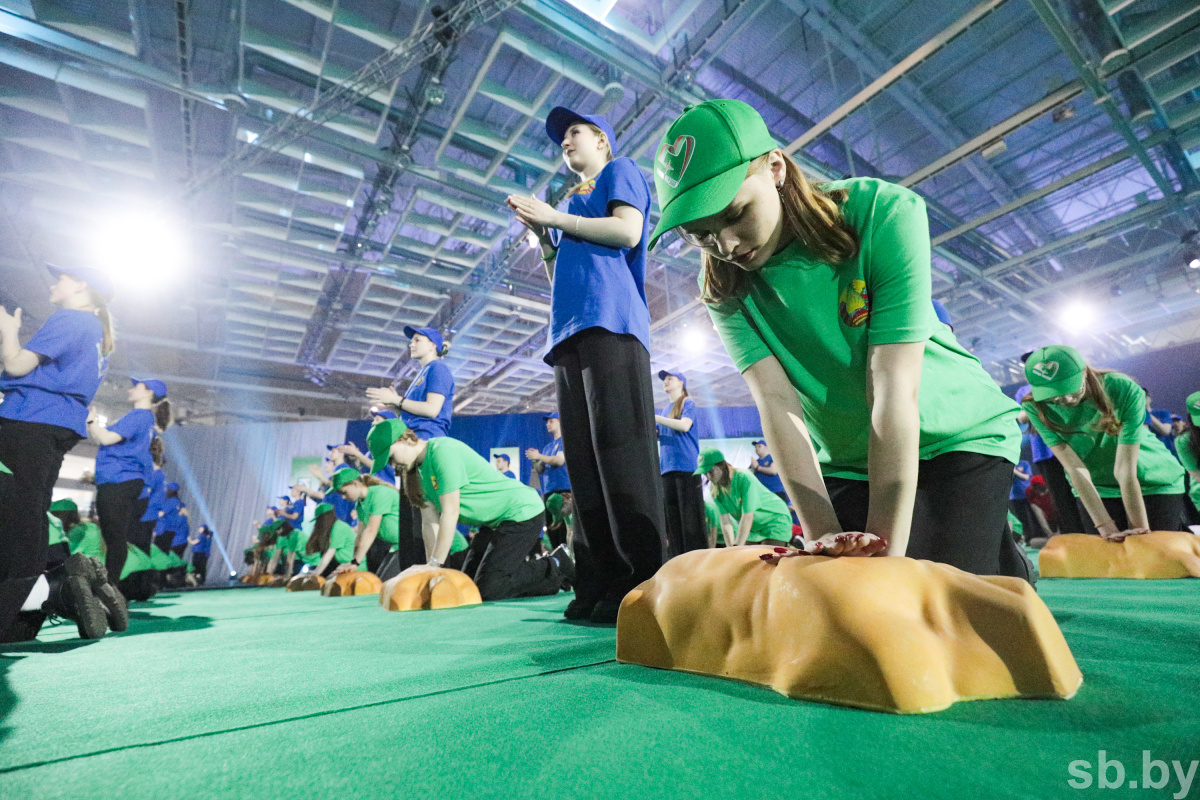 На стадионе «Минск-Арена» со всех регионов республики собрались делегации учащихся десятых классов, которые получили навыки базовой сердечно-легочной реанимации при оказании первой помощи человеку, сообщает Пул 4 Регион.