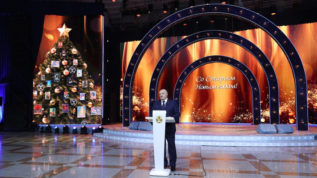 “Беларусь перешагнула порог нового года. Мы встретили его со светлыми и добрыми надеждами, которые неразрывно связаны с пережитыми событиями года минувшего, – сказал Президент. – Старый Новый год дает нам прекрасный шанс подвести итоги и взять в новый год все лучшее, что удалось сделать, и то, чем все мы вместе гордились, гордимся и восхищаемся. Прежде всего бесценные таланты, добросовестный труд профессионалов, которые присутствуют сегодня в этом зале, – журналистов, деятелей искусства, учителей, социальных работников”.